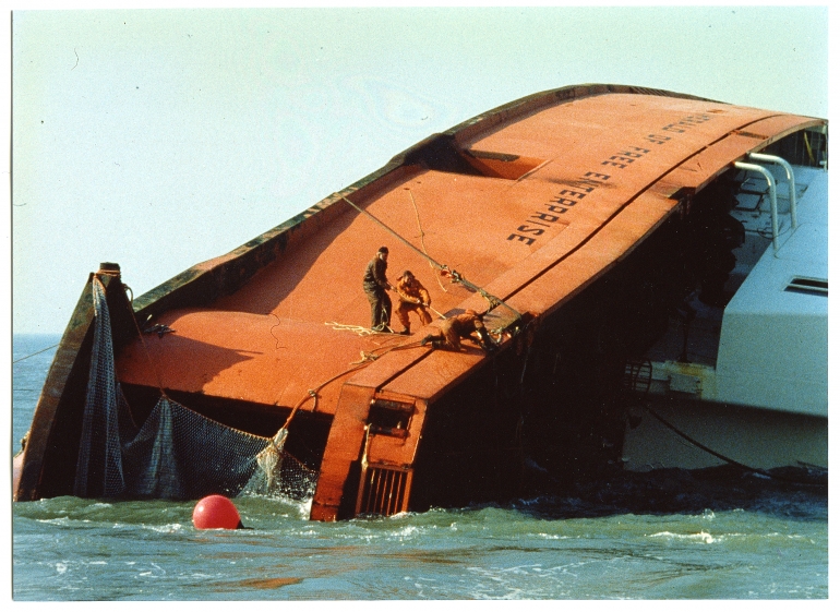 Il est un peu plus de 18h, le 6 mars 1987 quand le ferry britannique, qui assure la liaison entre Zeebruges et Douvres, chavire au large du port. Le bateau a appareillé avec ses portes avant ouvertes et, lorsqu’il a franchi les jetées et pris de la vitesse, l’eau a envahi le pont principal. Le Herald of Free Enterprise coule en deux minutes, se couchant sur son flanc sur un banc de sable.