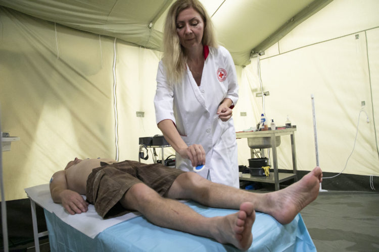 Comme dans de nombreuses villes de l'ouest de l'Ukraine, le système de santé d'Oujhorod est débordé. Pour répondre aux besoins médicaux croissants, la Croix-Rouge ukrainienne y a ouvert un centre de santé temporaire où travaille Olesya.